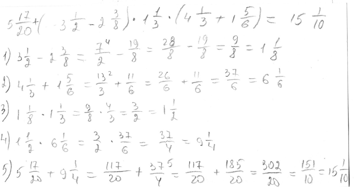 5)5 17/20+3 3/4=5 17/20+3 15/20=8 42/20=2 1/2=2,5