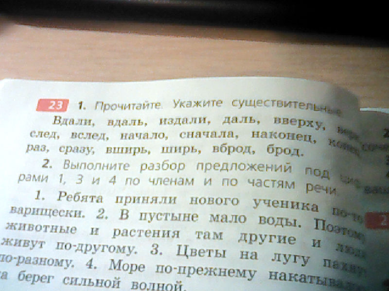 1)Прочитайте. Укажите существительные.2)Выполните разбор предложений под цифрами 1,3 и 4 по членам и по частям речи.