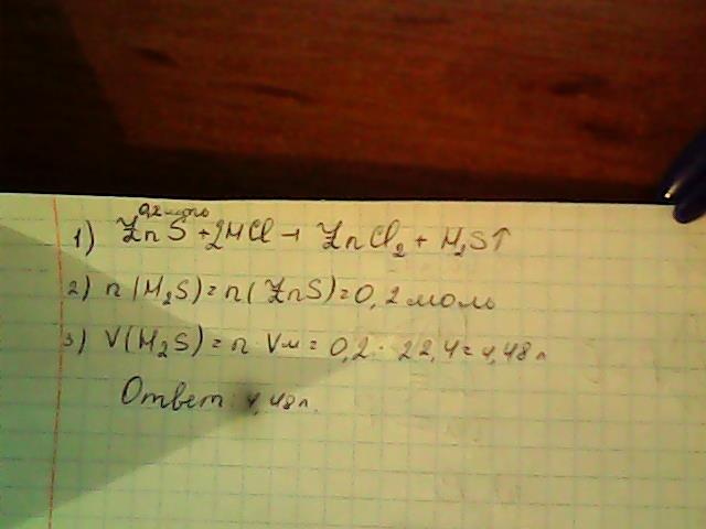 какой объём сероводорода выделится при взаимодействии 0,2 моль сульфида цинка с соляной кислотой?
