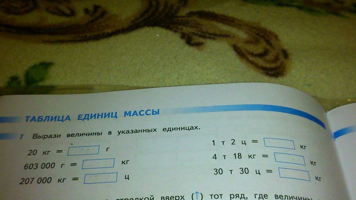 20 кг. =20000 г. 1 т. 2 ц.=1200 кг. 603000 г.=603 кг. 4 т. 18 кг. =4018 кг. 207000 кг.=2070 ц. 30 т. 30 ц. =33000 кг.