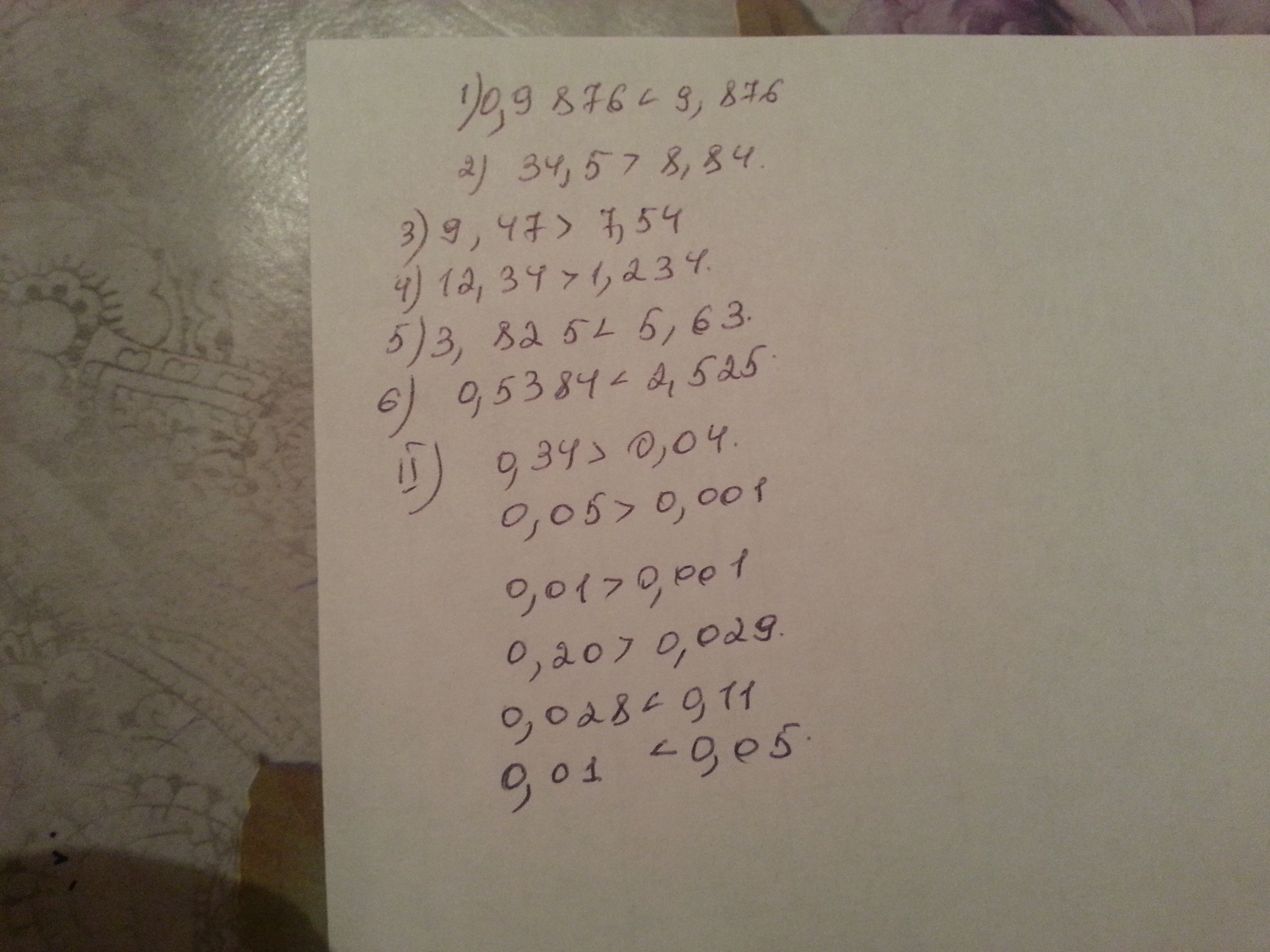 Во втором числе поставьте запятую и цифры 0 так, чтобы неравенство стало верным