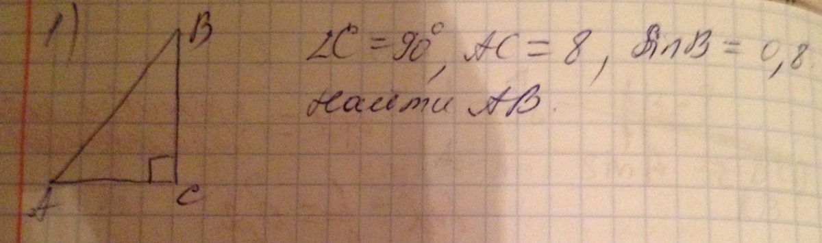 т.к. АС/АВ=sinb , а sinb=8/10 и АС=8, то АВ= 10