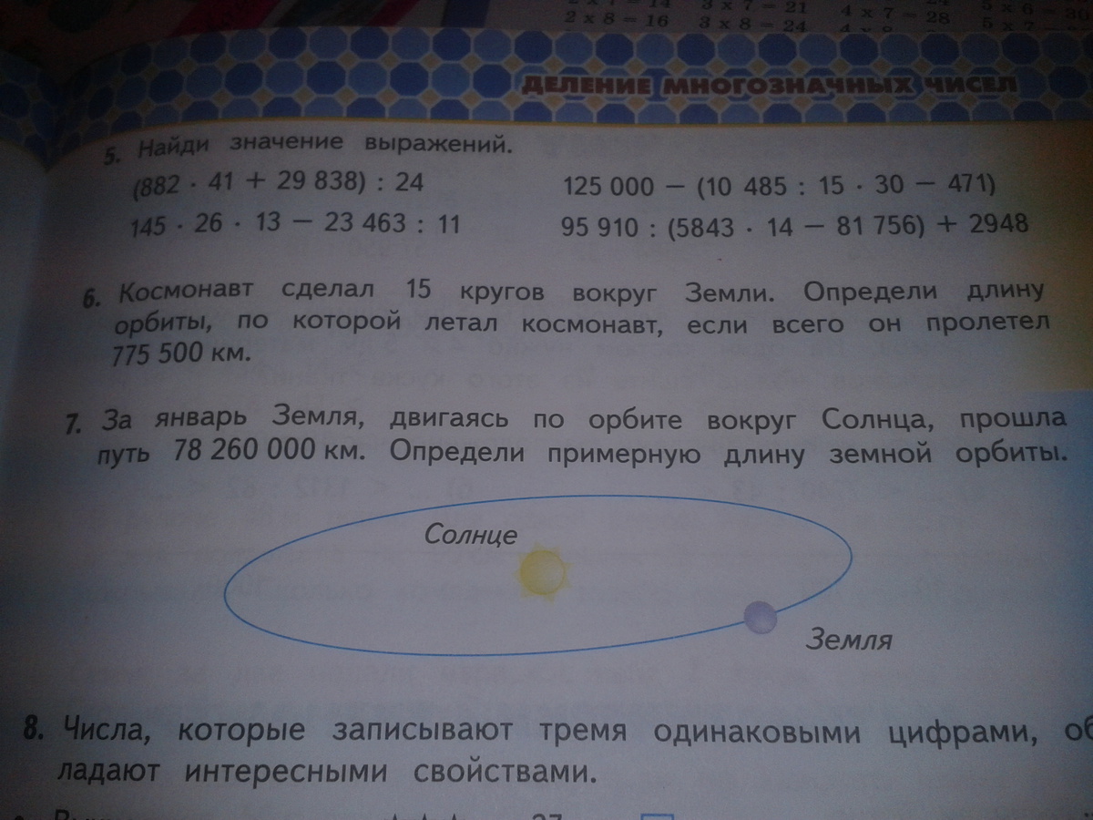 космонавт сделал 15 кругов вокруг Земли. Определи длину орбиты, по которой летал космонавт, если всего он пролетел 775500км.