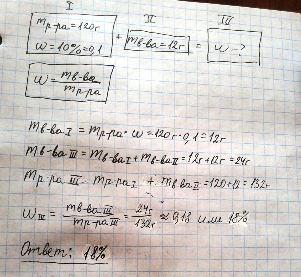 к 120 г 10%-ного раствора соли добавили еще 12 г этой же соли.Найдите массовую долю веществ в полученном растворе.