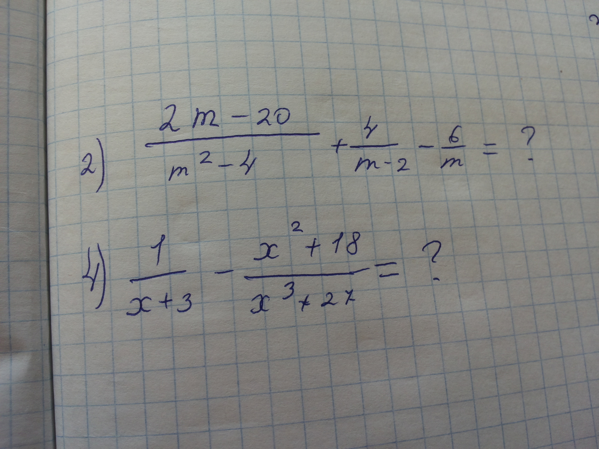 2) 2m-20 + 4 - 6 = 2m-20 + 4 - 6 =m(2m-20)+4m(m+2)-6(m-2)(m+2) =