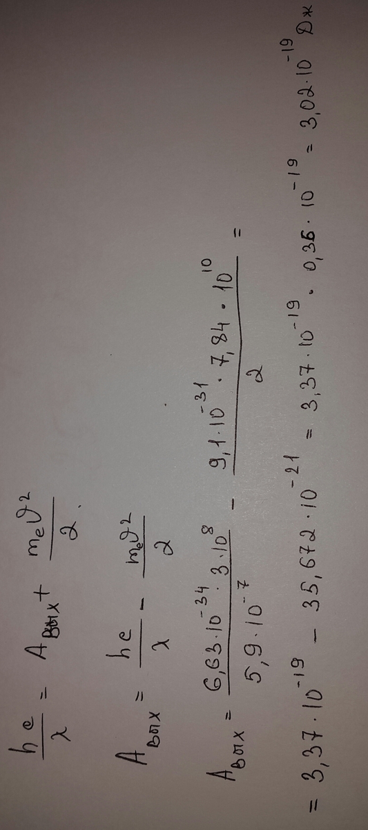 в этой задаче мы используем формулу фотоэффекта. для вычислении нам понадобятся постоянные величины а также масса электрона