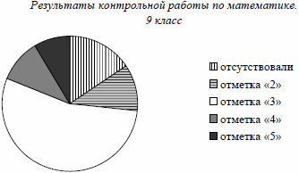 Завуч школы подвёл итоги контрольной работы по математике в 9-х классах. Результаты представлены на круговой диаграмме.Какое из утверждений неверно, если всего в школе 120 девятиклассников?