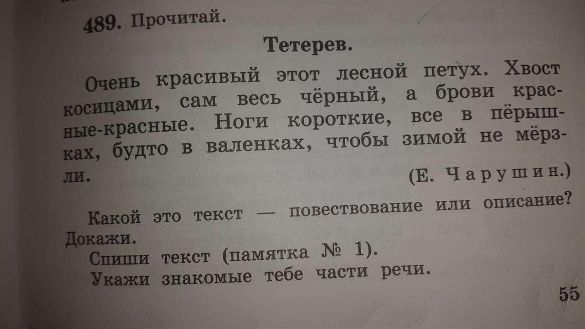 этот текст описание. Так как в это тексте описывается тетерев, его внешность
