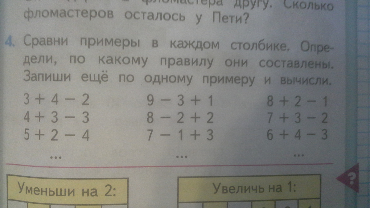 первый столбик и последний на уменьшения ответа а второй на прибавления 11-