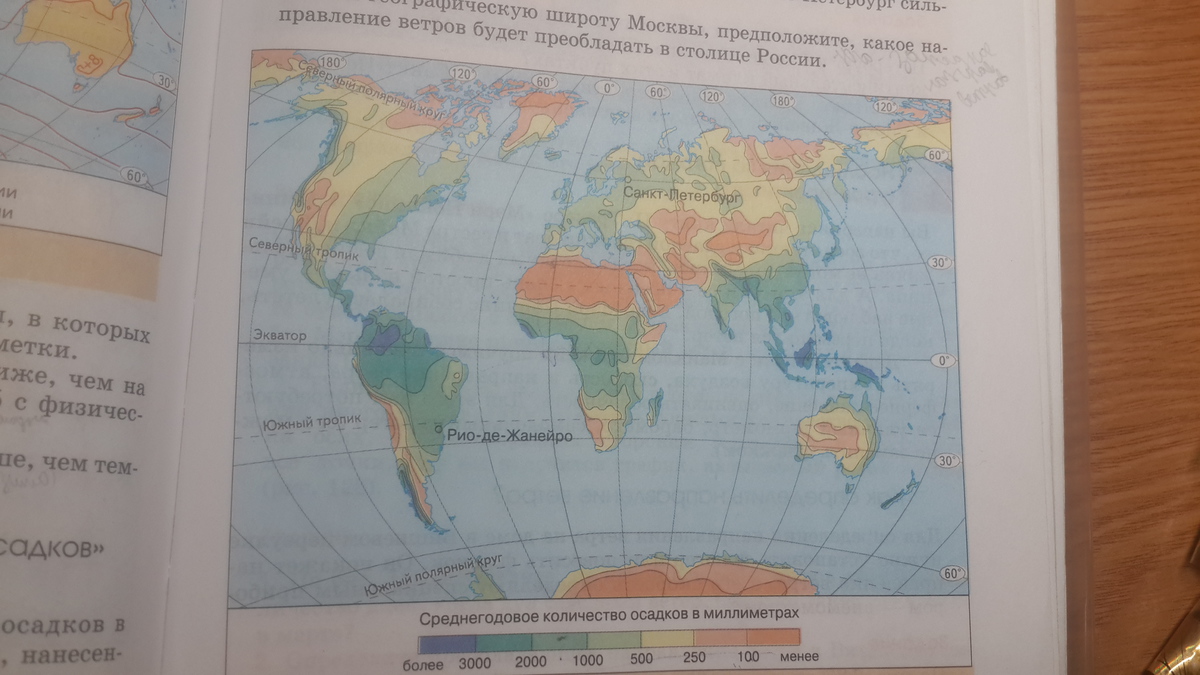 Определите,в каких широтах Земли расположены самые засушливые районы,а в каких -самые влажные.