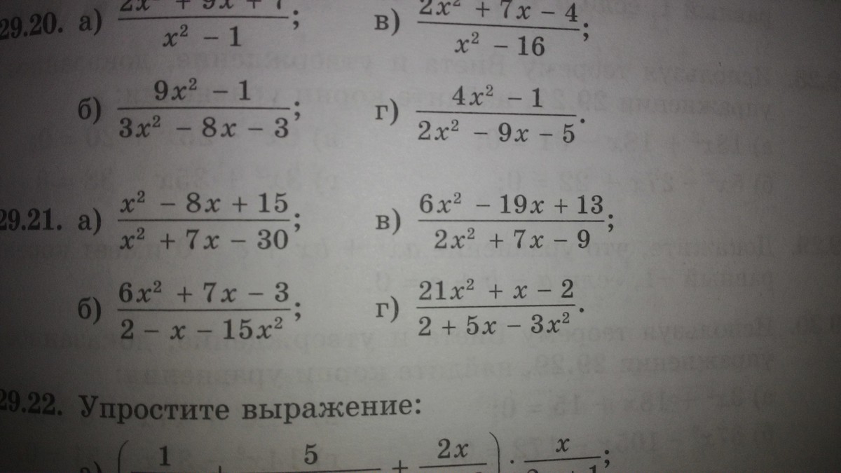 Приравняйте верхнюю и нижнюю часть к 0 и решайте как обычные уравнения через дискриминант . Затем подставьте получившиеся значения и решите дробь. Решите сами , чтобы понять , если что спрашивайте в личных сообщениях.