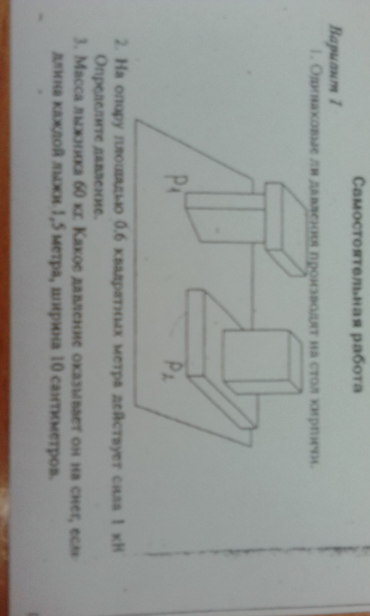 P=F:S= 600Н : 0,3м в квадрате =2000Па