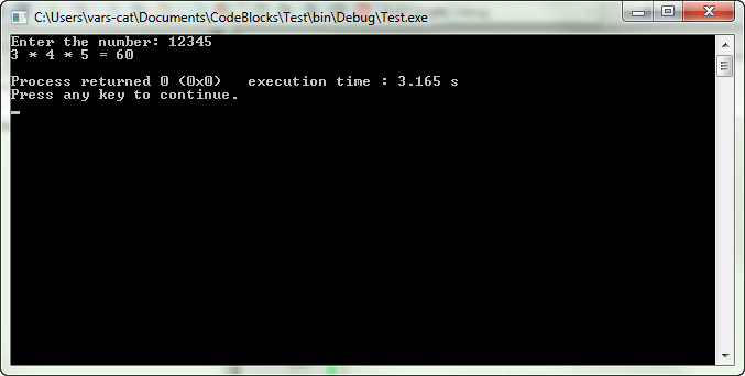 cout << a << " * " << b << " * " << c << " = " << (a * b *c) << endl;