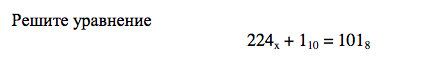 в десятичной системе должно быть равно 64 (чтобы выполнялось равенство). Поэтому просто берем и переводим 64 в другие системы счисления. Сразу пропускаем двоичную, троичную и четверичную, потому что числа 224 в этих системах счисления не существует. А вот в пятеричной как раз
