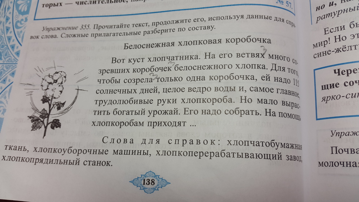 На помощь хлопкоробам приходят хлопкоуборочные машины.Они везут хлопок на хлопкоперерабатывающий завод.Там,хлопок кладут на хлопкопрядильный станок,который делает хлопкобумажную ткань.
