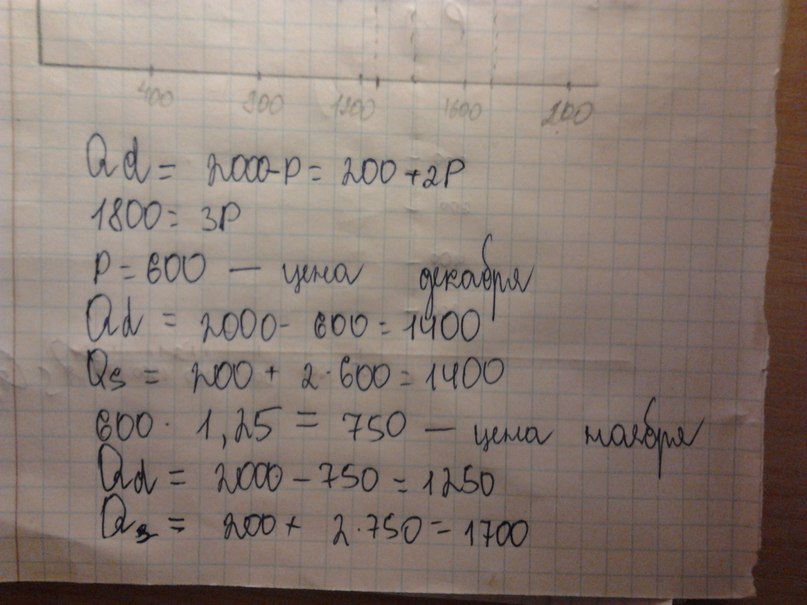 Еще в ноябре спрос на крабы в Москве описывался функцией: Qd = 2000 — Р, где Qd — количество банок, покупаемых в течение недели, Р — цена 1 банки крабов (р.). Предложение крабов в Москве описывается выражением: Qs = 200 + 2Р, где Qs — количество банок, предлагаемых к продаже в течение недели. Однако в середине декабря москвичи начали готовиться к встрече Нового года. Спрос на крабы изменился, и кривая спроса сместилась параллельным переносом. В результате этого равновесная цена крабов выросла на 25%.