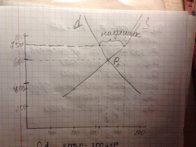 Итак, объем предложения будет выше объема спроса. Образуется излишек товара в размере: