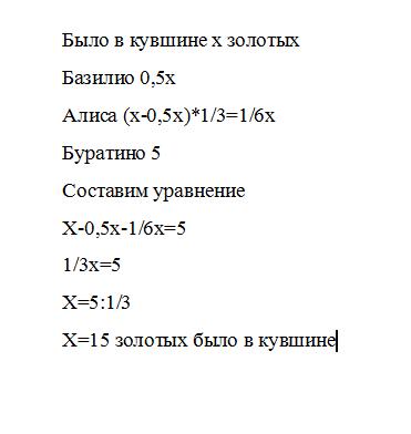 3) 1/2-1/6=(3-1)/6=2/6=1/3 - получает Буратино