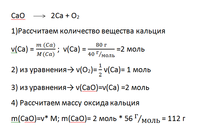 Пожалуйста помогите! Определите массу оксида Ca и количество вещества кислорода если в результате разложения образовалось 80 г. Са