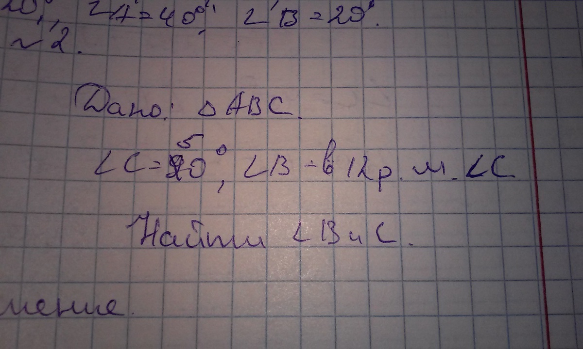 Раз угол B в 12 раз меньше угла C, значит, если обозначить угол B через x, то угол С равен 12x. Кроме того, известна теорема о том, что в треугольнике сумма всех трех углов равна 180 градусов. Поэтому получаем уравнение: