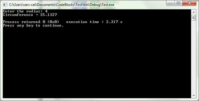 cout << "Circumference = " << (2 * pi * r) << endl;