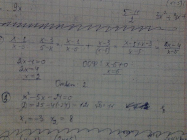 я не правильно написал, так надо было - 1) (х-1)/(х-5) - (х-3)/(5-х)=1 :)