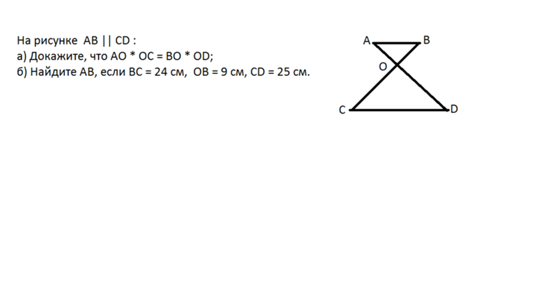 2) АВ/СД=ВО/ОС ВО=ВС-ОС АВ/СД=(ВС-ОС)/ОС=ВС/ОС-1