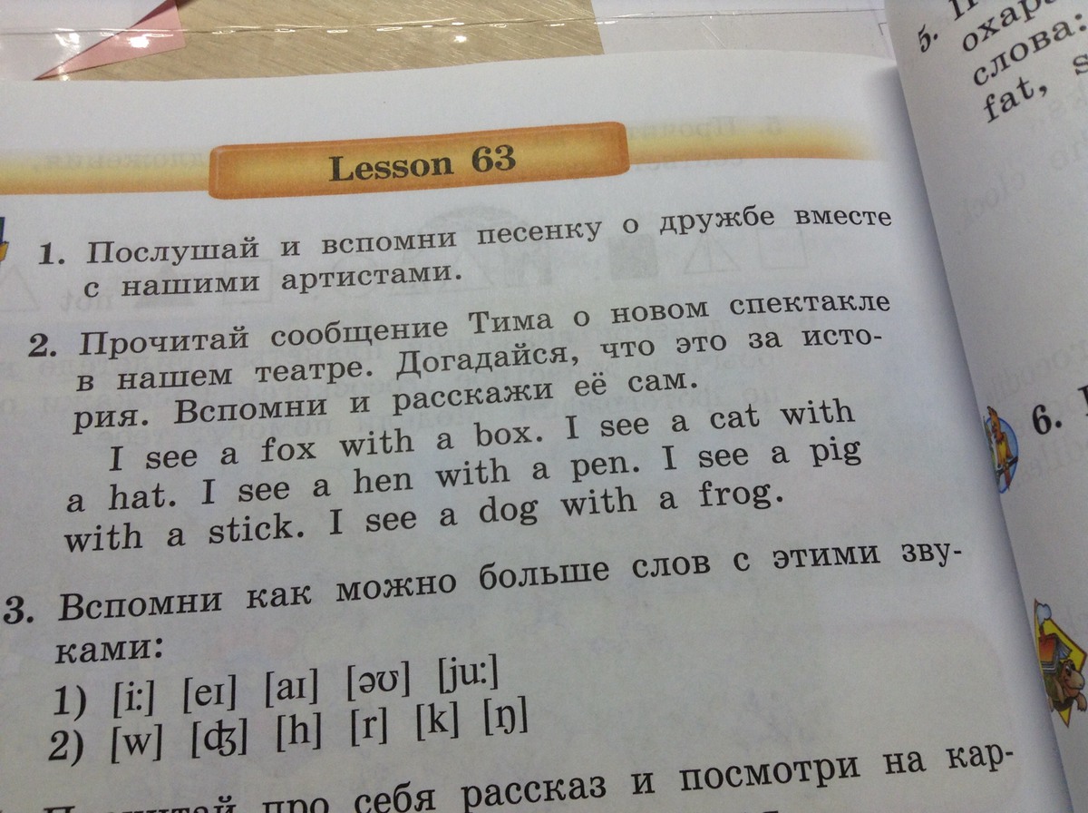 я вижу лису с коробочкой. я вижу кошку с шляпкой. я вижу курицу с ручкой. я вижу свинью с палкой. я вижу собачку с лягушкой