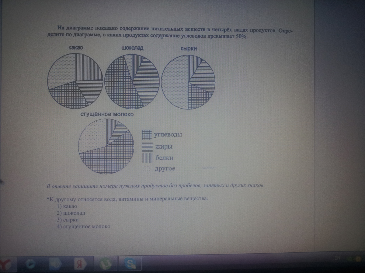 Определите по диаграмме, в каких продуктах содержание углеводов превышает 50%