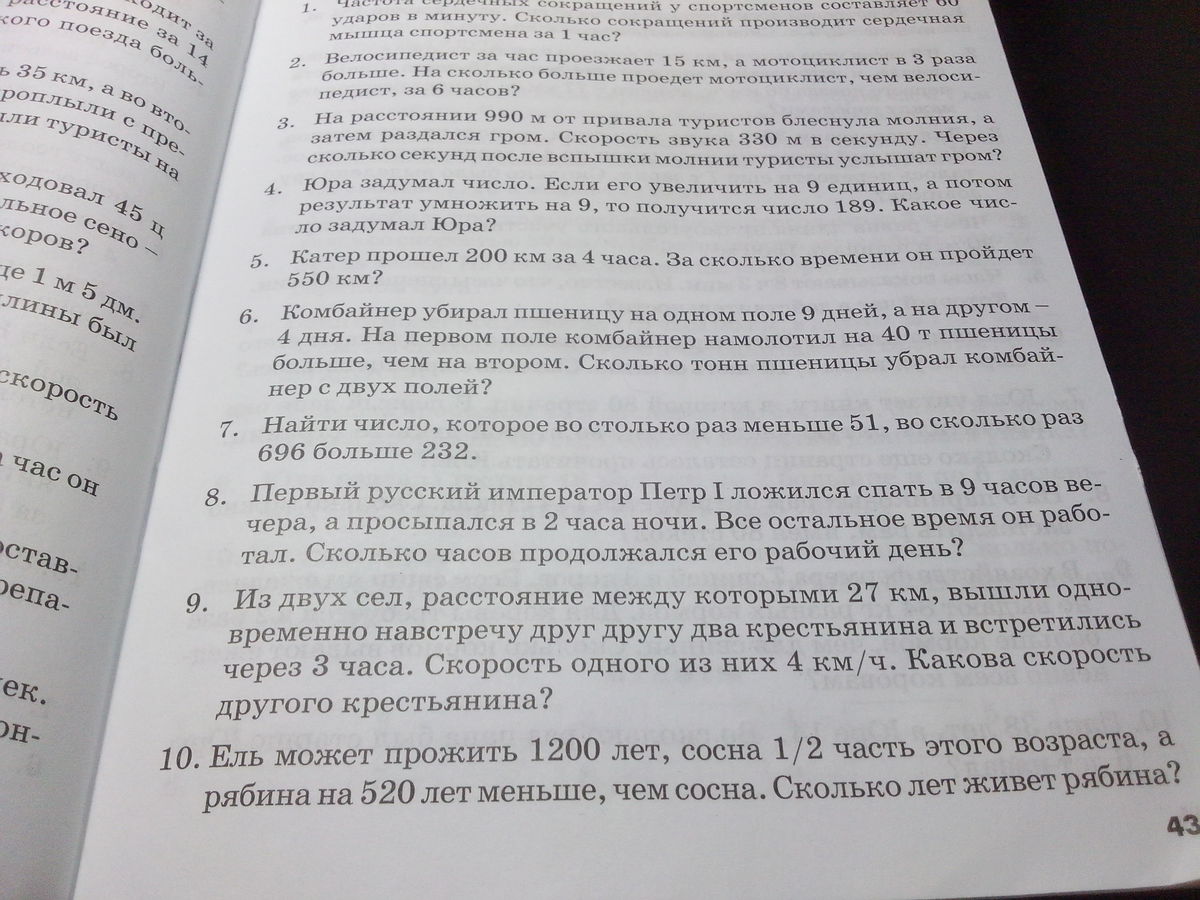 9задача) 1)27км:3часа=9км/час это двое в час или скорость сближения их за час; 2) 9км-4км/час=5км/час скорость второго.