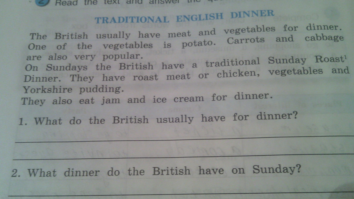 2 On Sundays the British have a traditional Sunday Roast Dinne.