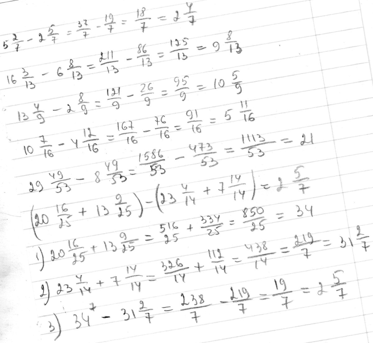 6) ( 20. 16/25 + 13. 9/25) - (23. 4/14 + 7. 14/14)