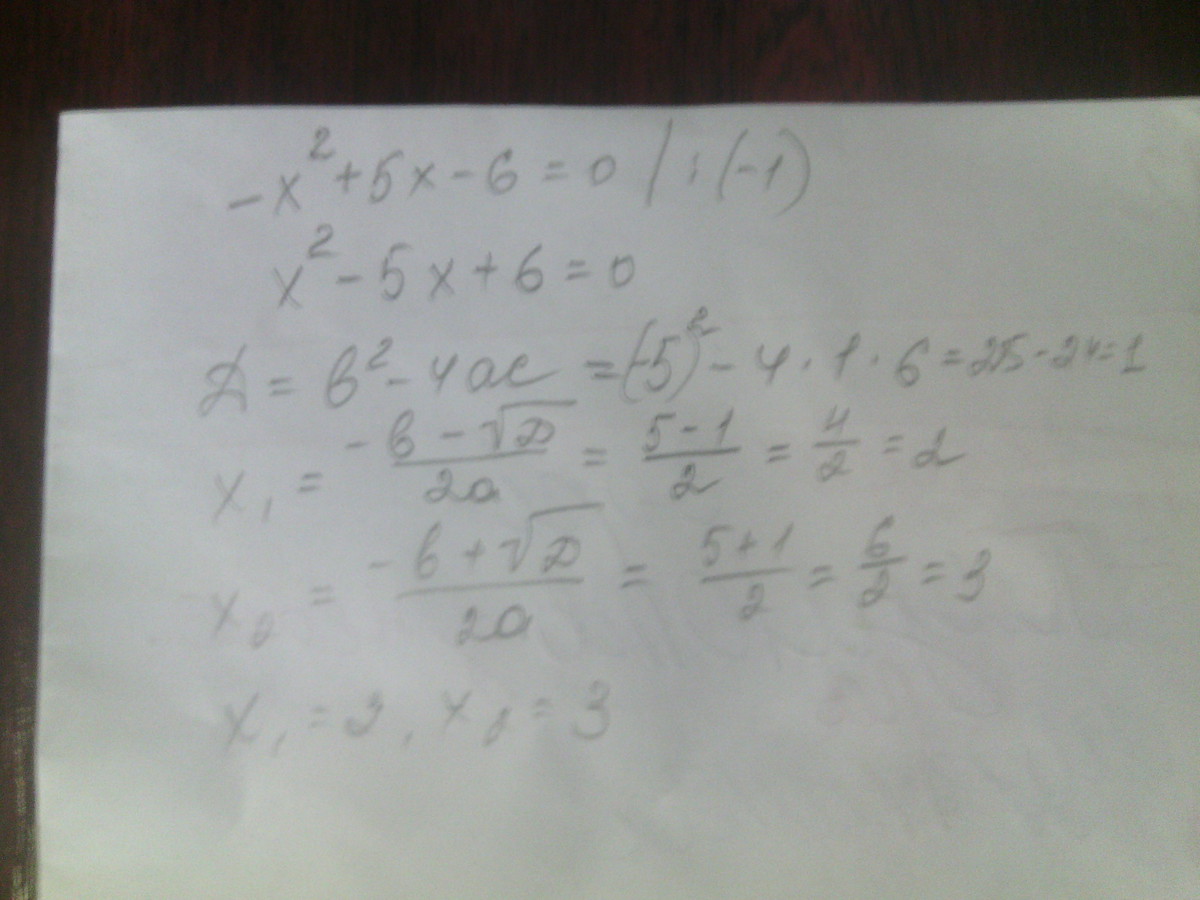 D = (-5)² - 4 * 1 * 6 = 25 - 24 = 1 > 0