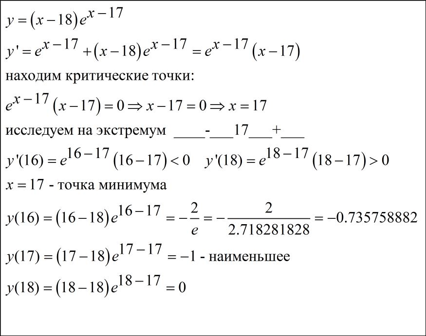 y=(x-18)e^(x-17) на отрезке [16;18]