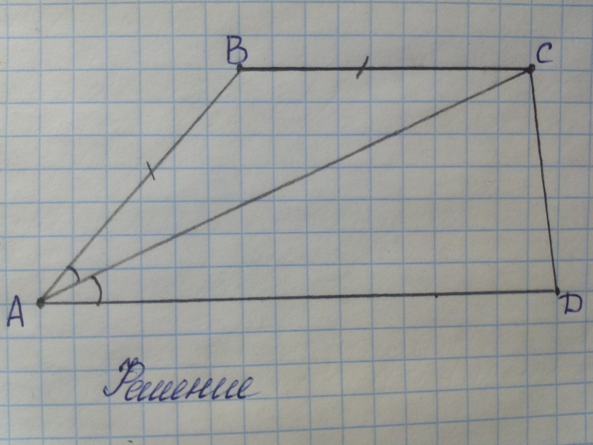 Допустим, что прямые ВС и AD не параллельны. Тогда они пересекаются в некоторой точке К. Получается, что через точку К проходит две прямые параллельные прямой К. Но это противоречит аксиоме «Через точку, не лежащую на данной прямой, можно провести на плоскости не более одной прямой, параллельной данной», а значит ВС||AD