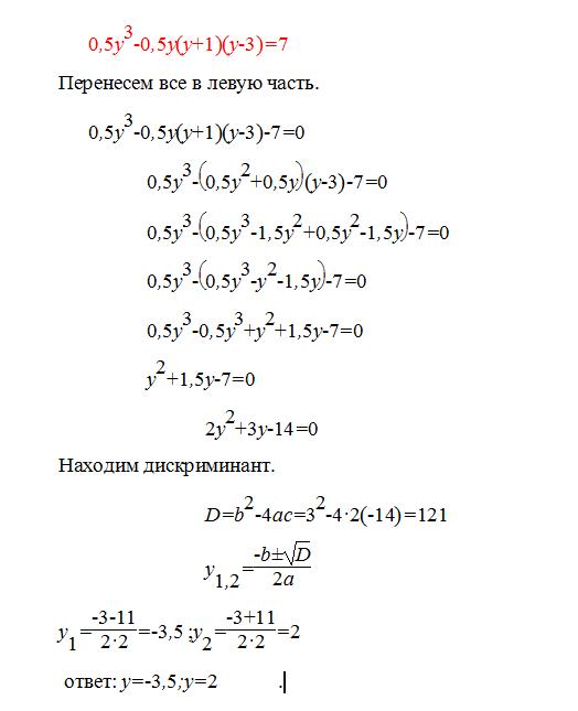 0,5y^3-(0,5y^2-0,5y)(y+1)=7