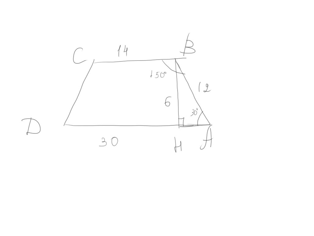 Найдите площадь трапеции АВСD с основаниями АD и ВС, если известно, что АВ = 12 см, ВС = 14 см, АD = 30 см, угол B = 150 градусов