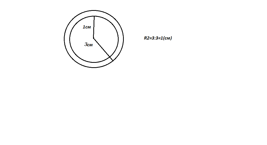 начерти две окружности с одним центром так чтобы радиус одной был 3 см а радиус другой составлял третью часть радиуса первой окружности