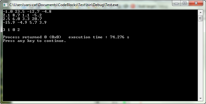 Дан двумерный массив размером 4*4, заполненный вещественными числами с клавиатуры. Сформировать одномерный массив, каждый элемент которого равен количеству отрицательных элементов соответствующей строки.
