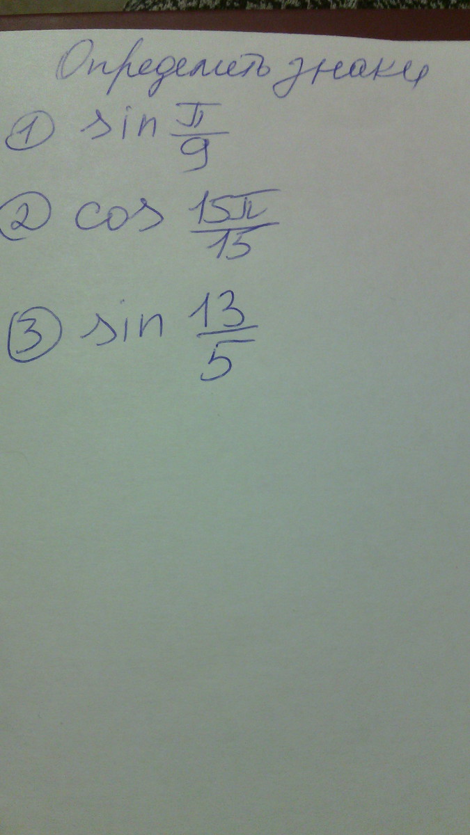 2)cos15π/15=cosπ=-1;⇒знак"-";