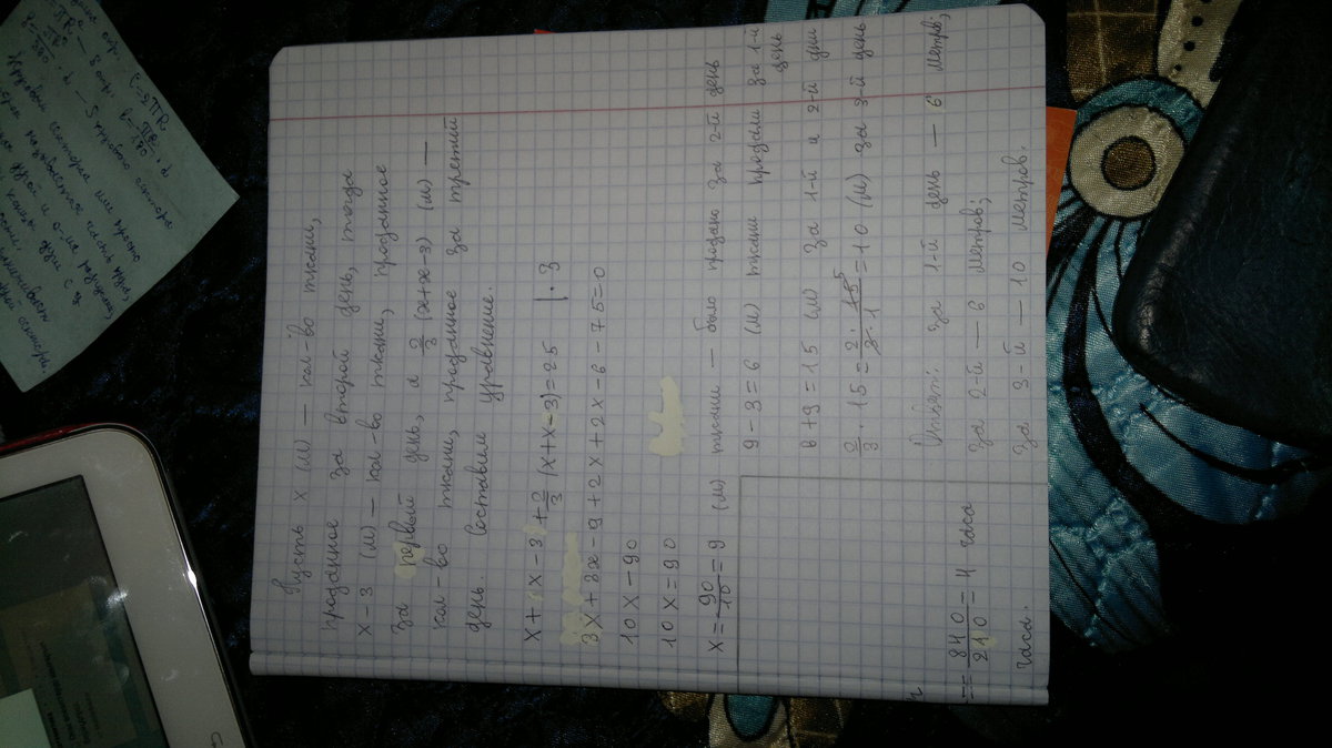 За 3 дня продали 25 метров ткани. В первый день продали на 3 метра меньше ткани, по сравнению со втроым днем, А в третий день продали две/третьи части от того что продали в первый и второй день . Сколько ткани продали за каждый день?