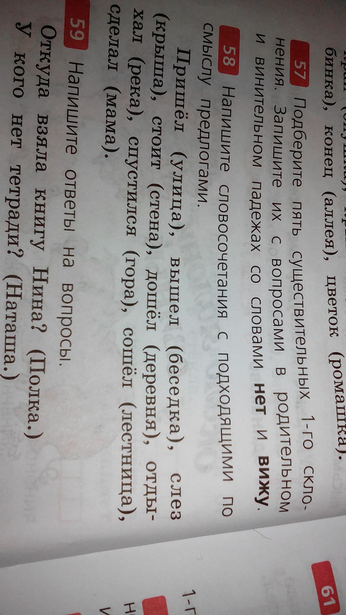 пришёл с улицы, вышел из беседки, слез с крыши, стоит у стены, дошёл до деревни, отдыхал у реки, спустился с горы, сошёл с лестницы, сделал с мамой.