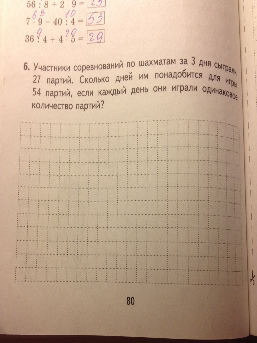 Участники соревнований по шахматам за 3 дня сыграли 27 партий.Сколько дней им понадобится для игры 54 партий,если каждый день они играли одинаковое количество партий? ПОМОГИТЕ ПОЖАЛУЙСТА!!!!!