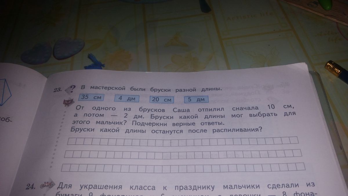 2дм=20см 20см+10см=30см то есть бруски больше 30 см это:5 дм 4дм и 35см