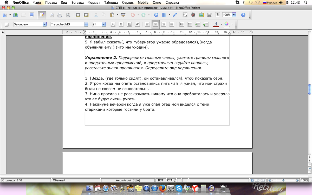2) Утром (когда?), когда мы опять остановились пить чай, я узнал (что?), что мои страхи были не совсем не основательны.
