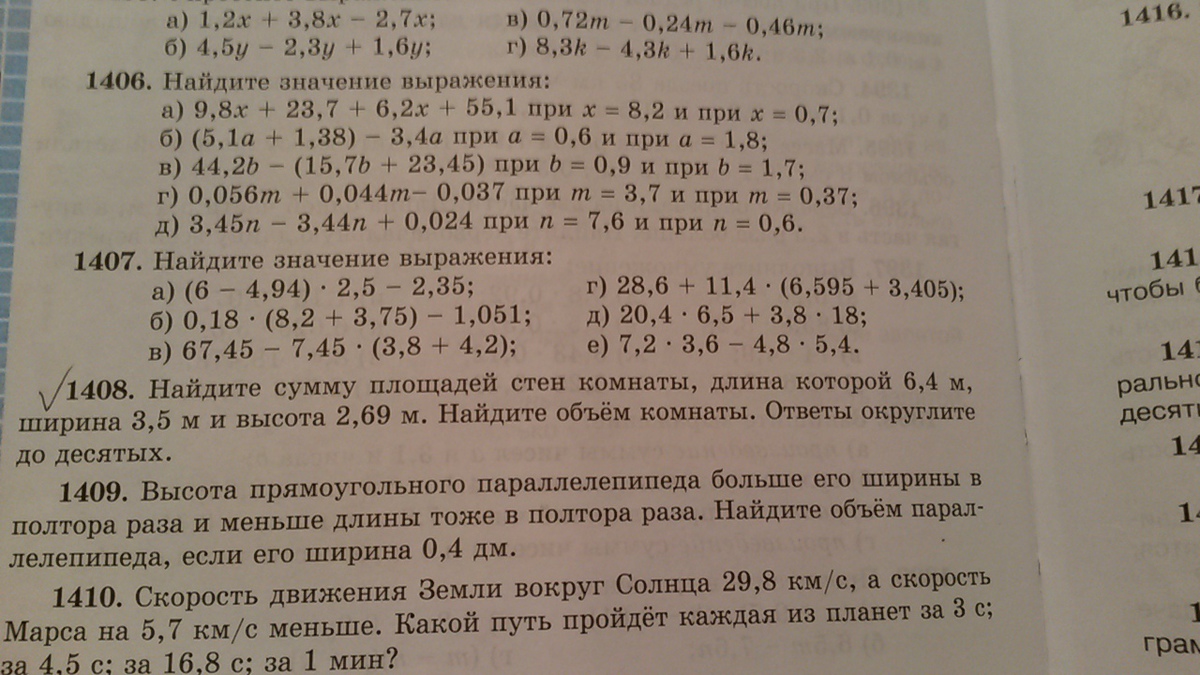 4)V=a*b*h=6,4*3,5*2,69=60,25куб. м=60,3куб.м -объем комнаты