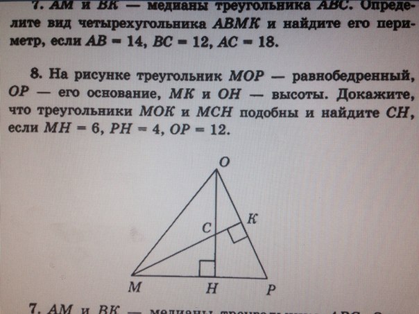 1) По условию Δ МОР - р/б , ОР - основание ⇒ высота МК, опущенная из вершины на основание, является также медианой (по свойству р/б Δ) ⇒