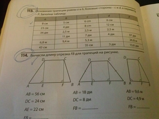 Первая трапеция : 1 = 58; 2=32; 3=58