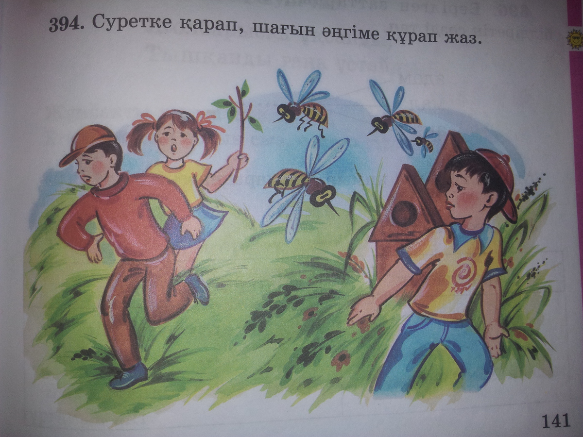 Далада талдар, шоптер мен аранын уйы турды.Балалар аранын уйын урып ,онын ишинен аралар шыгып балаларды шагайын деп калды.Ал балалар аралардан коркып кашып кетти.