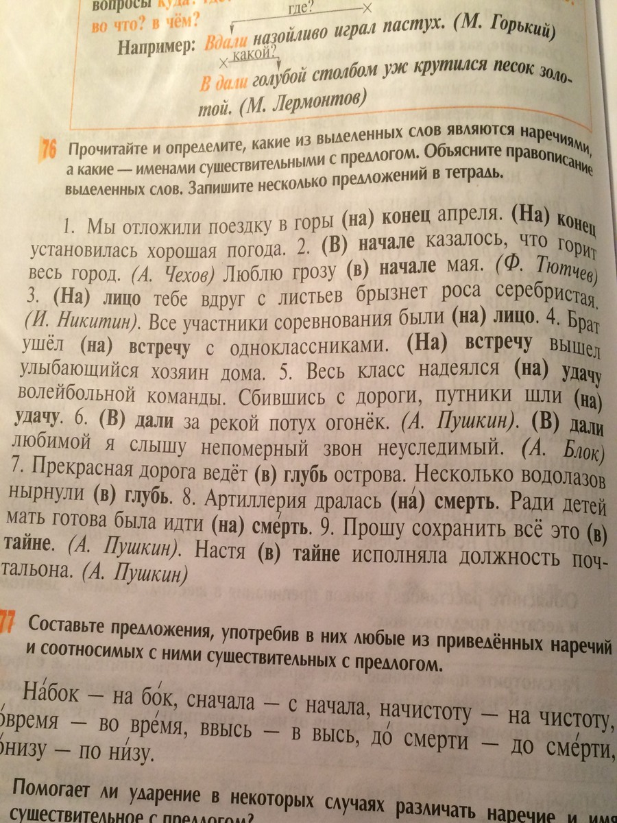 5. Весь класс надеялся на удачу( им. сущ. с пред.). Сбившись с дороги,путники шли наудачу( наречие). 6. В дали за рекой потух огонек.( им. сущ с пред.) Вдали любимой....( наречие).7. Прекрасная дорога ведет в глубь острова( им. сущ. с пред.). Несколько водолазов нырнули вглубь.( наречие). 8. Артиллерия дралась насмерть( наречие). Ради детей мать готова была идти на смерть( им. сущ. с пред.). 9.Прошу сохранить все это в тайне( им. сущ. с пред.). Настя втайне... ( наречие)